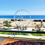 Moderno, espaçoso e requintado apartamento T2 na 1ª linha em Monte Gordo com uma excelente vista para o mar que lhe confere uma luminosidade absolutamente única. Todo remodelado, com um fantástico terraço com vista para o mar e decorado de uma forma elegante e funcional, este apartamento dispõe de um quarto duplo com duas camas single, um quarto com cama de casal, ambos com roupeiro e portas para o terraço, cozinha equipada com placa, forno, máquina de lavar loiça, frigorífico, microondas, máquina de café, torradeira, etc., área de lavandaria com máquina de lavar roupa, uma casa de banho com base de duche e uma ampla confortável sala com área de estar e de jantar e acesso ao terraço virado ao mar com mesa e cadeiras para as refeições ao ar livre ou para um fim de tarde relaxante com uma bebida fresca a desfrutar da vista e do agradável clima que a região lhe proporciona.
